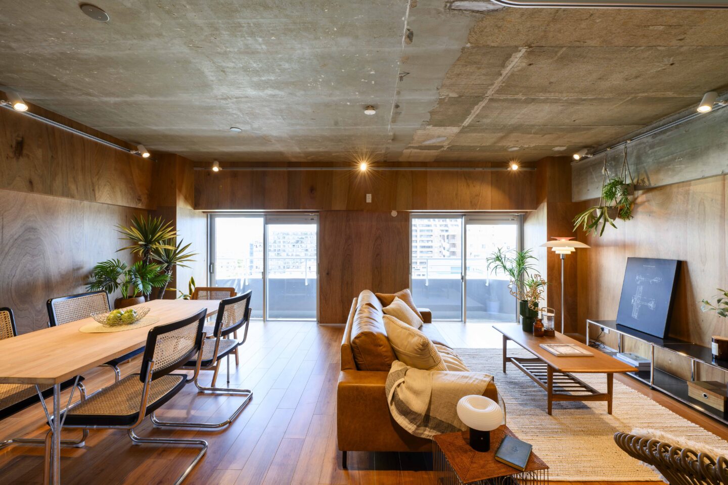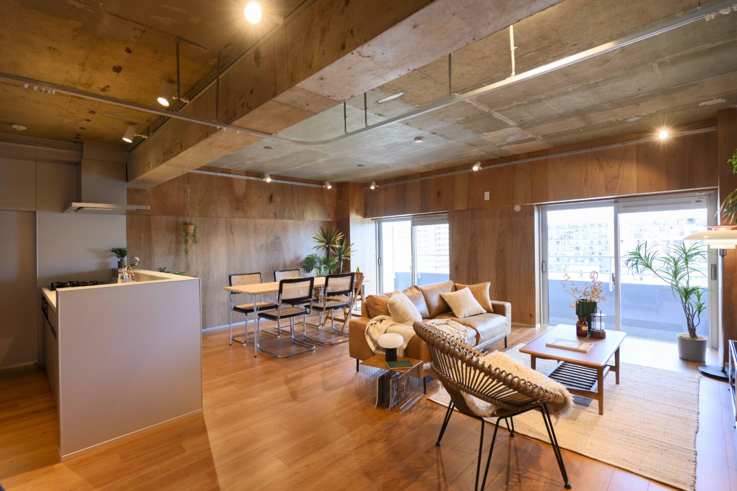 "本プロジェクトは、葛西に位置するマンションのリノベーション計画です。HOUSが取得した物件に対し、新たな価値を付加し、再び市場へと届けることを目的としています。 70平米の空間に3人暮らしを想定し、限られた面積の中で最大限の心地よさを生み出す住まいを計画。住む人の暮らしを支えるため、コスト、快適性、機能性、デザインをバランスよく組み込んだ設計としています。 コストは日々の使い勝手に直結するキッチンやバスルームに重点的に配分し、設備性能を高めることで長く快適に住める環境を整備。快適性においては、設備だけでなく空間設計による体験価値にも注力しています。仕上げ材で覆い尽くさず、スラブを活かした天井の高さが開放感を生み出し、過度な装飾を抑えたドレスダウンのデザインが、自然と暮らしに馴染む空間をつくります。 また、コンクリートの力強さと白い壁のコントラストが、清潔感と端正さを際立たせ、素材の質感そのものを活かした設計としています。美しさと機能性が調和した空間は、暮らしに静かな豊かさをもたらし、長く愛される住まいへとつながっていきます。"